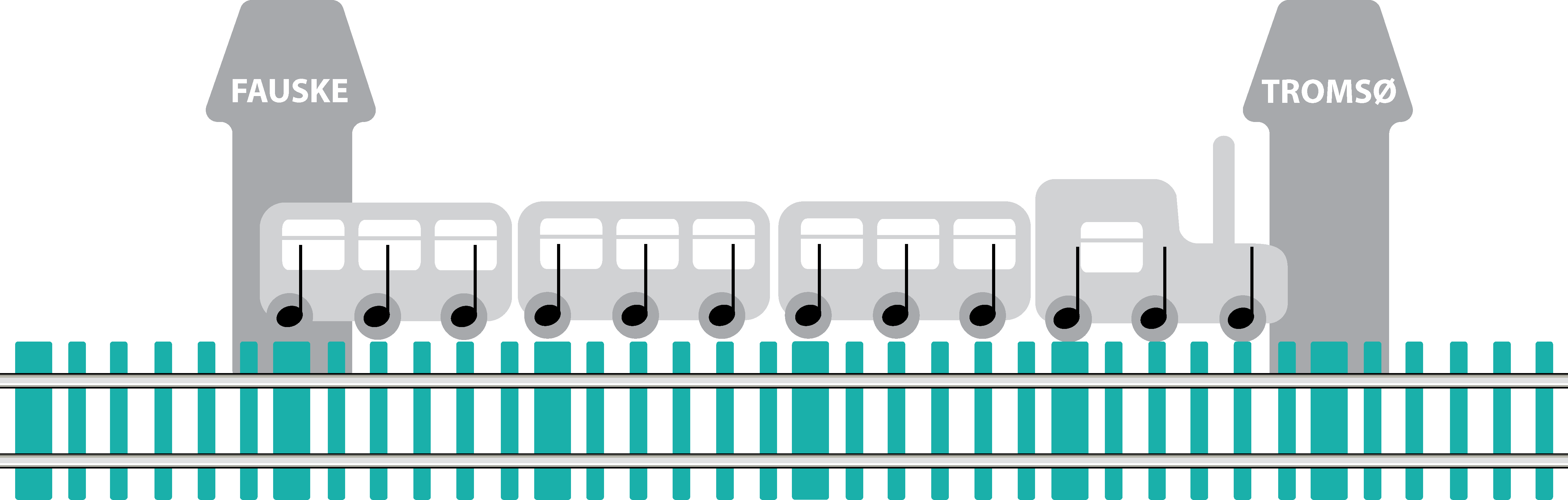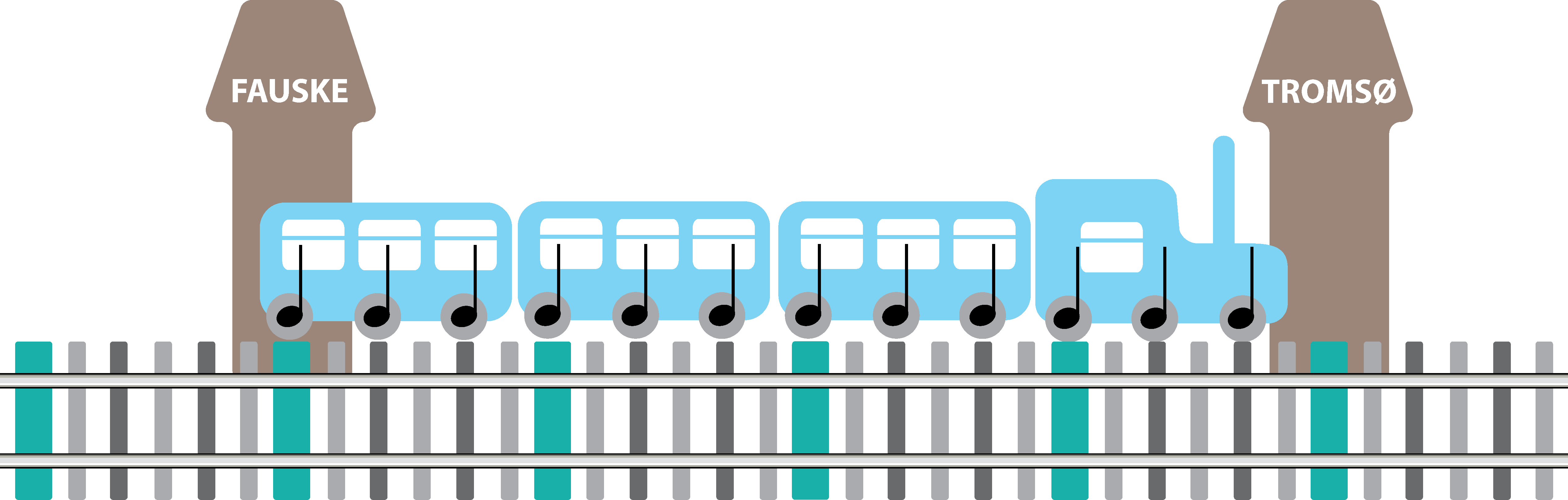 3. Prøv å sette ord på hvordan rytmen veksler mellom å ha lange og korte impulser. På samme måte som togskinner har sviller, har også musikken faste, jevne underdelinger som melodien beveger seg over.